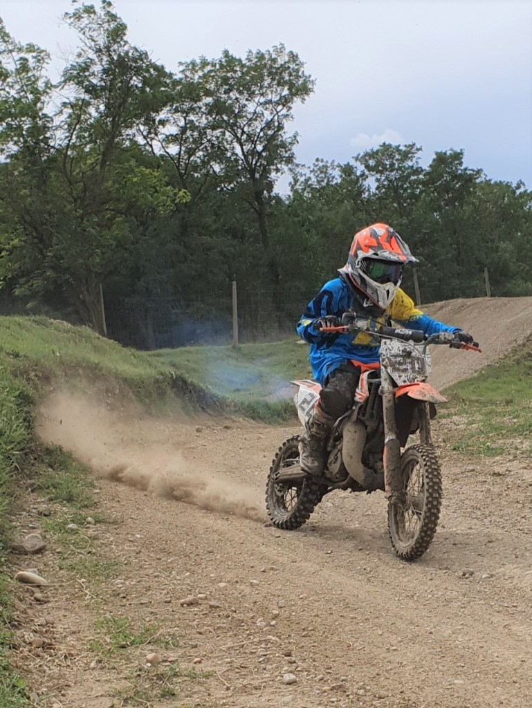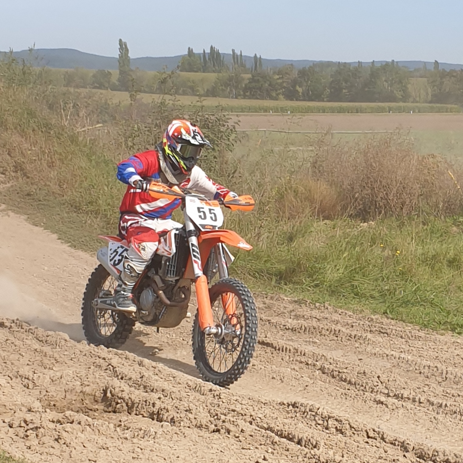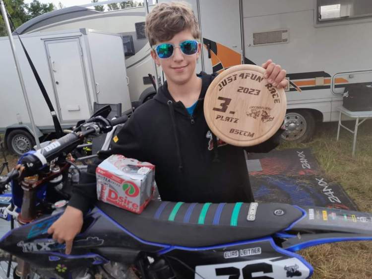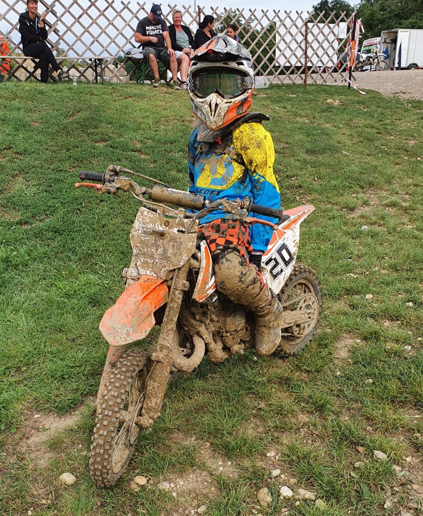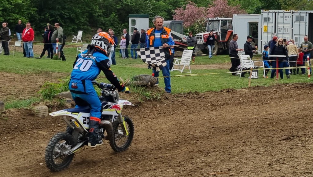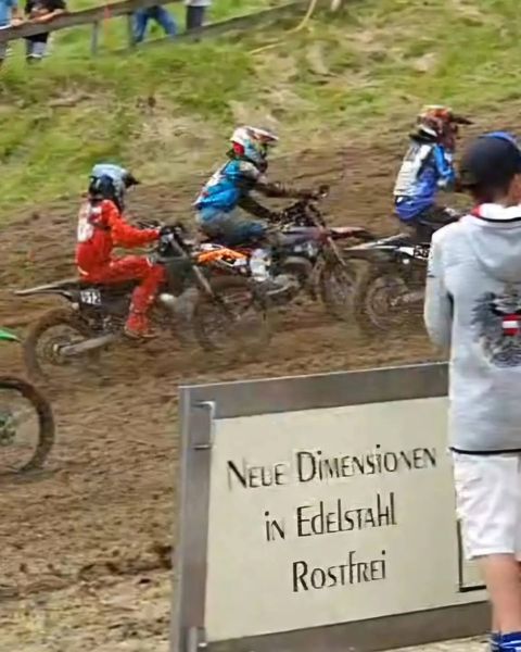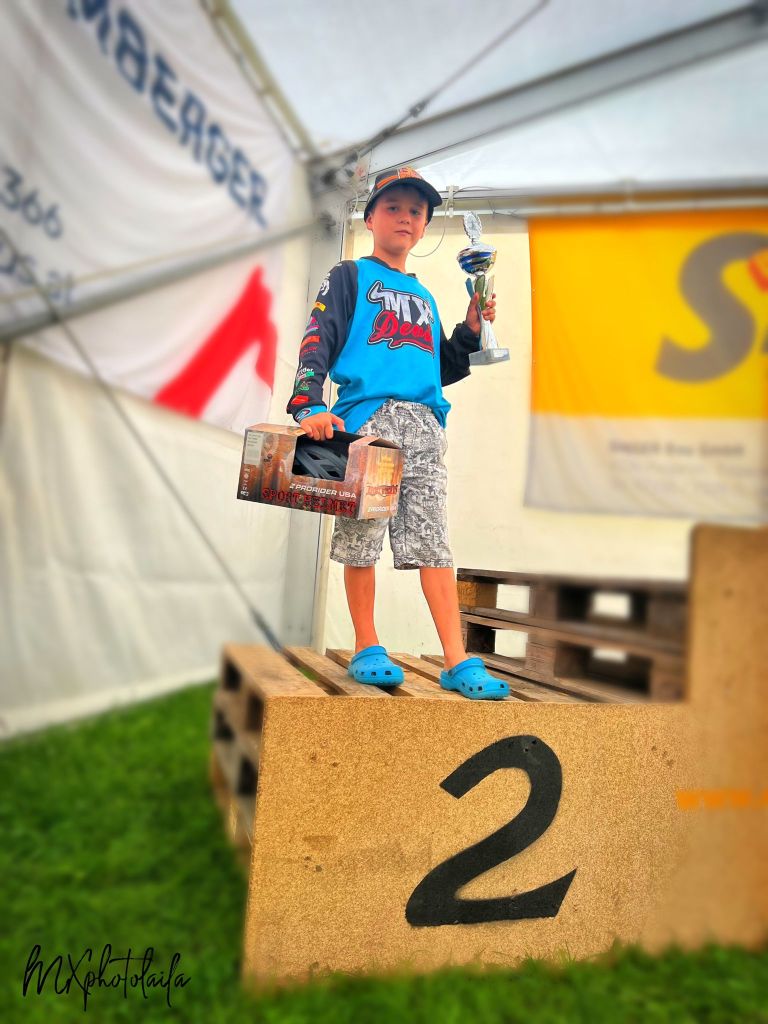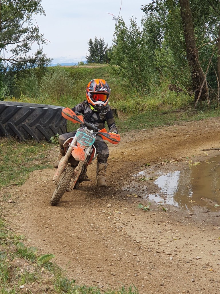 Im zweiten Lauf verschluckte sich Leon´s KTM in der Einführungsrunde bei einer tiefen Wasserdurchfahrt und brachte nach einem verschlammten Luftfilter dann leider nicht mehr die volle Leistung. Leon zeigte sich aber kämpferisch konnte trotzdem den 3. Platz ins Ziel bringen.