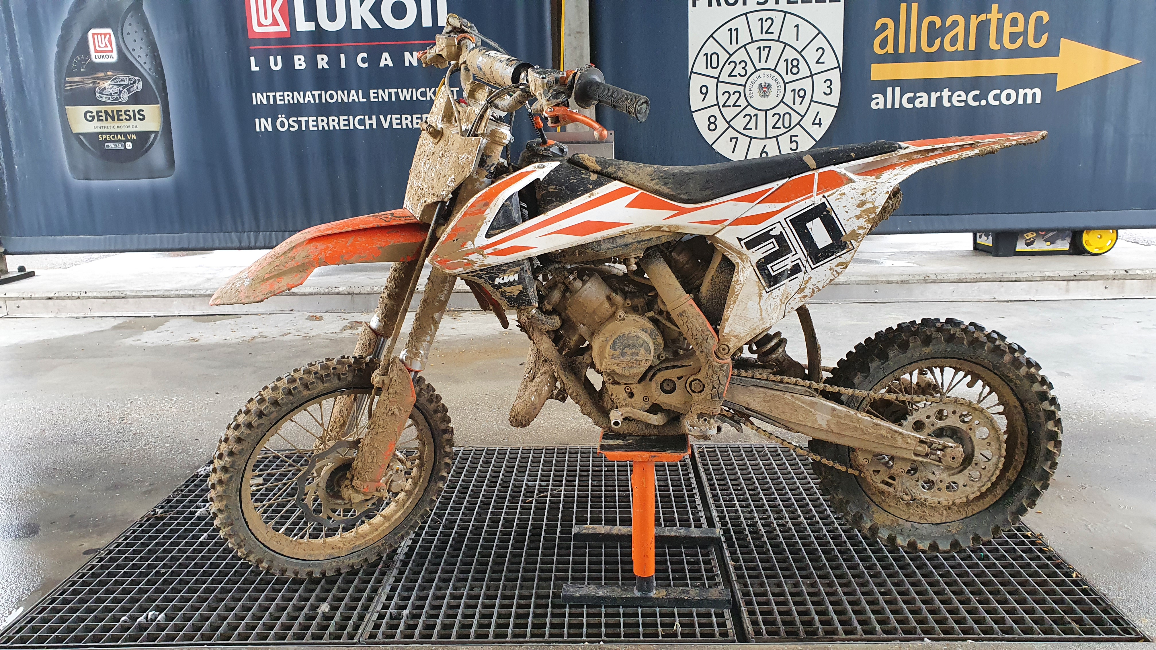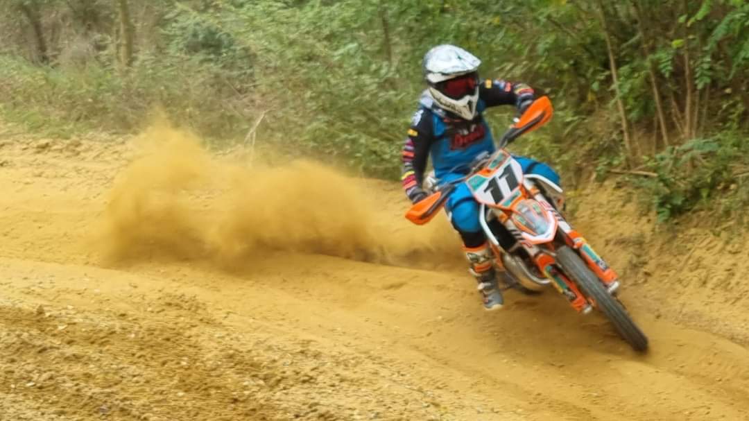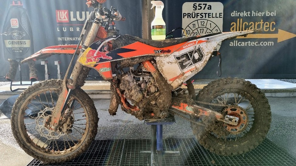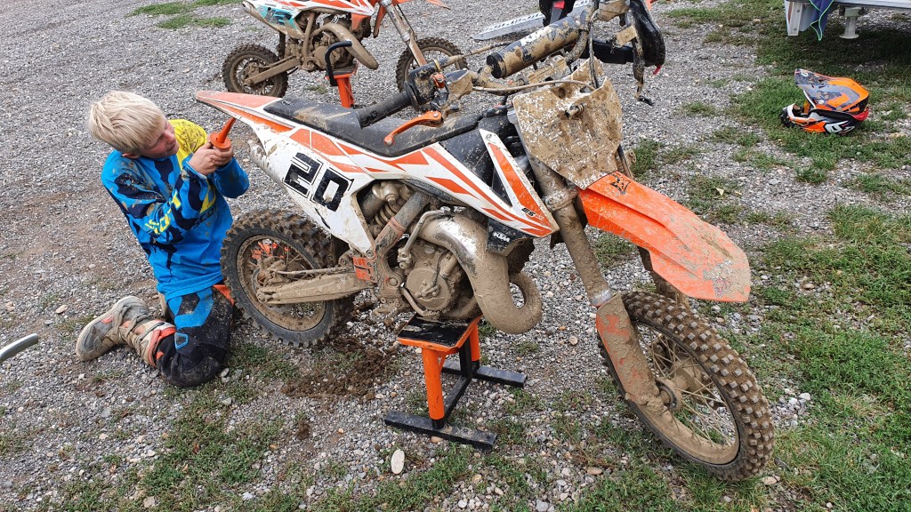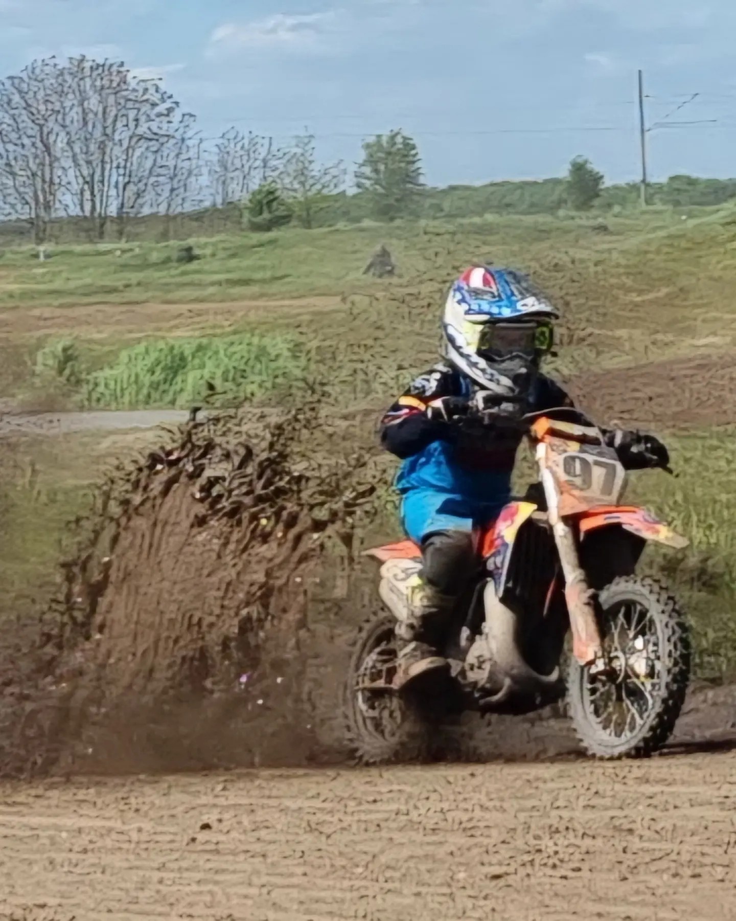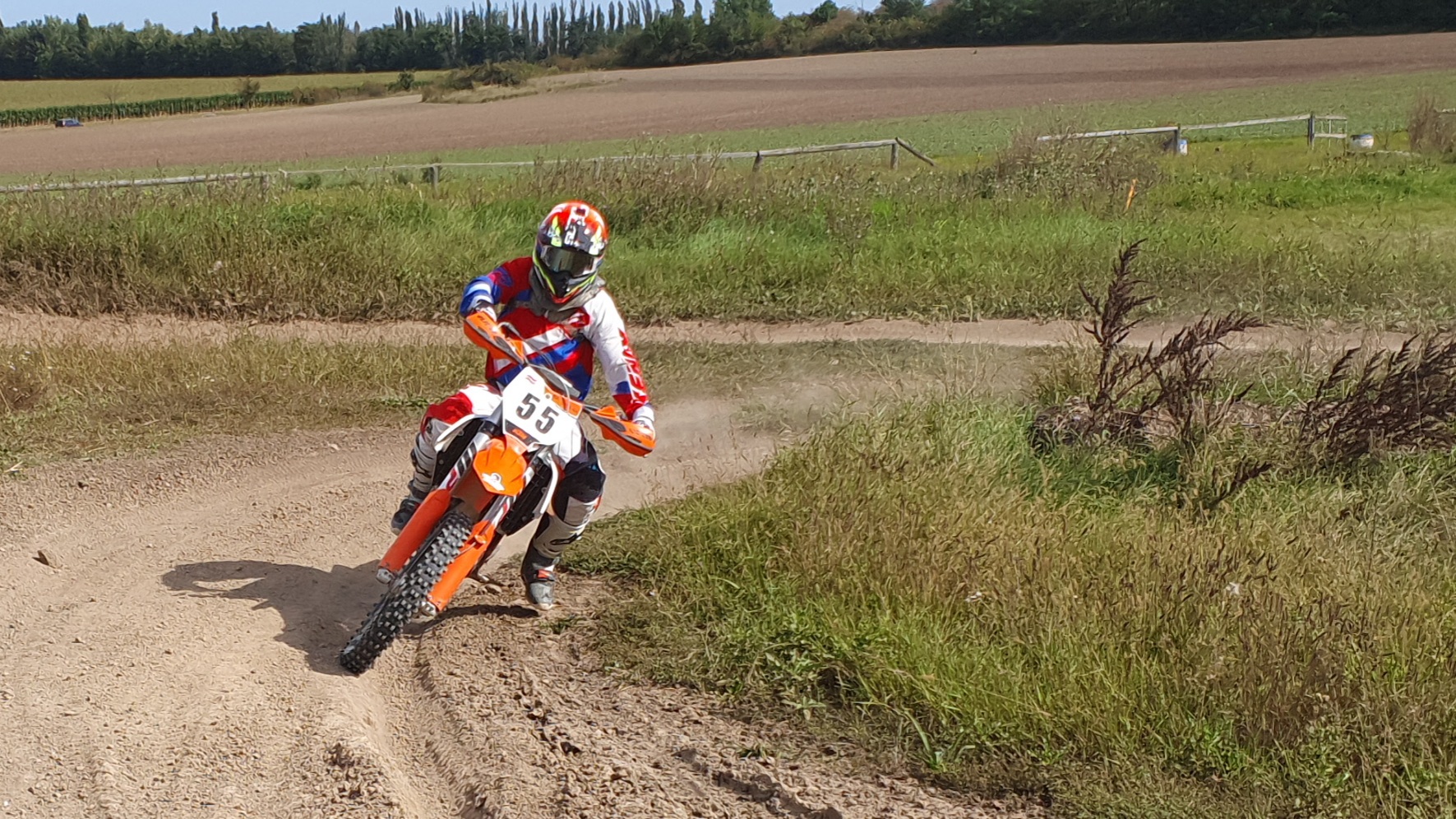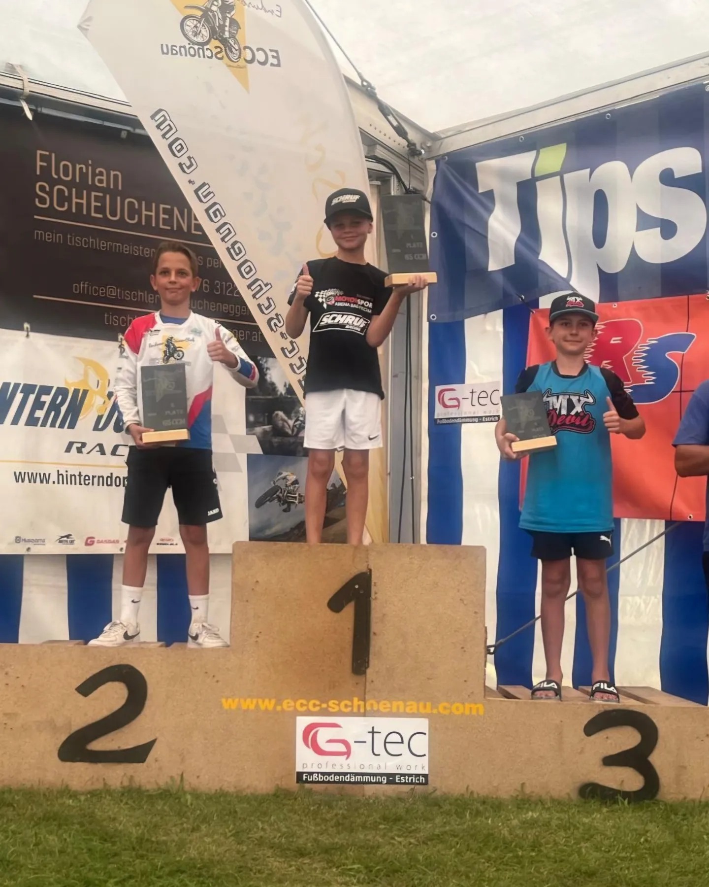 Im zweiten Lauf verschluckte sich Leon´s KTM in der Einführungsrunde bei einer tiefen Wasserdurchfahrt und brachte nach einem verschlammten Luftfilter dann leider nicht mehr die volle Leistung. Leon zeigte sich aber kämpferisch konnte trotzdem den 3. Platz ins Ziel bringen.