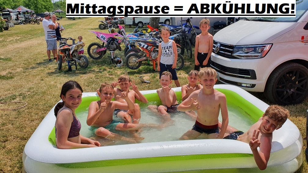 Mit einer Abkühlung zu Mittag für unsere Racer!